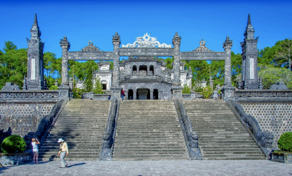 베트남과 유럽의 건축양식이 절묘하게 섞인 특이한 구조의 왕릉으로 콘크리트 석상의 경우 유럽인의 모습과 유사하다.